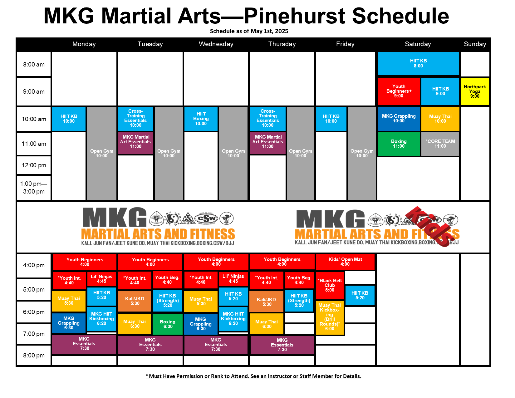 This is the schedule for indoor classes currently available at MKG Seattle. Whether your interest is fitness, martial arts, stress relief or general interest there is something for EVERYONE. Anyone looking for Kids Martial Arts classes will find that we have classes running Mondays – Thursdays after 4 pm, and classes on Saturdays from 9:00 – 9:50 am.